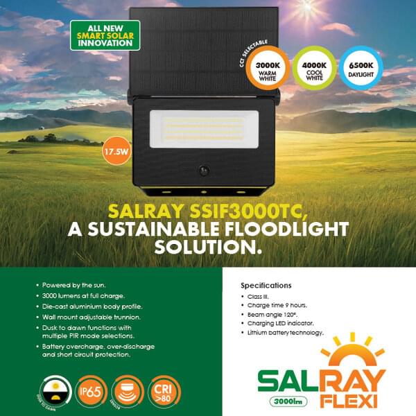 Why not consider the innovative SALRAY 3000 TC solar floodlight from SAL, now with selectable CCT!