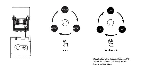 Mode settings: The default factory sensor MODE 1 setting is dusk to dawn with 100% PIR sensor control. If other MODE settings are required, in addition to the on-board button selections located on the rear of the luminaire, an optional remote controller is sold separately, refer installation instructions for settings.